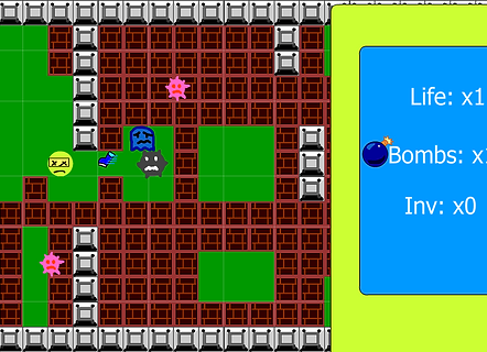 Pacabomb is a mixed of bomberman and pacman where you have to blow up the enemy then eat them. You can collect a variety of power up to help you advance through a level.